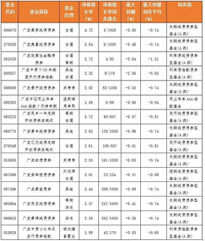 在低利率的市场环境下,投资者的目光再度聚焦于那些能够穿越周期、在不同分化行情中持续展现业绩韧性的基金。作为深耕固定收益业务近二十载的综合性基金公司,广发基金固收团队坚持稳中求进的投资理念,旗下多只产品取得了绩优的长期业绩。