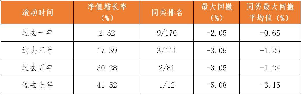 同样由宋倩倩管理的广发景丰纯债债券A(003223),在过去一年、三年、五年、七年四个考察维度中也实现了同类领先。拉长时间看,该基金过去七年净值增长率为31.13%,在同类中排名前20名。