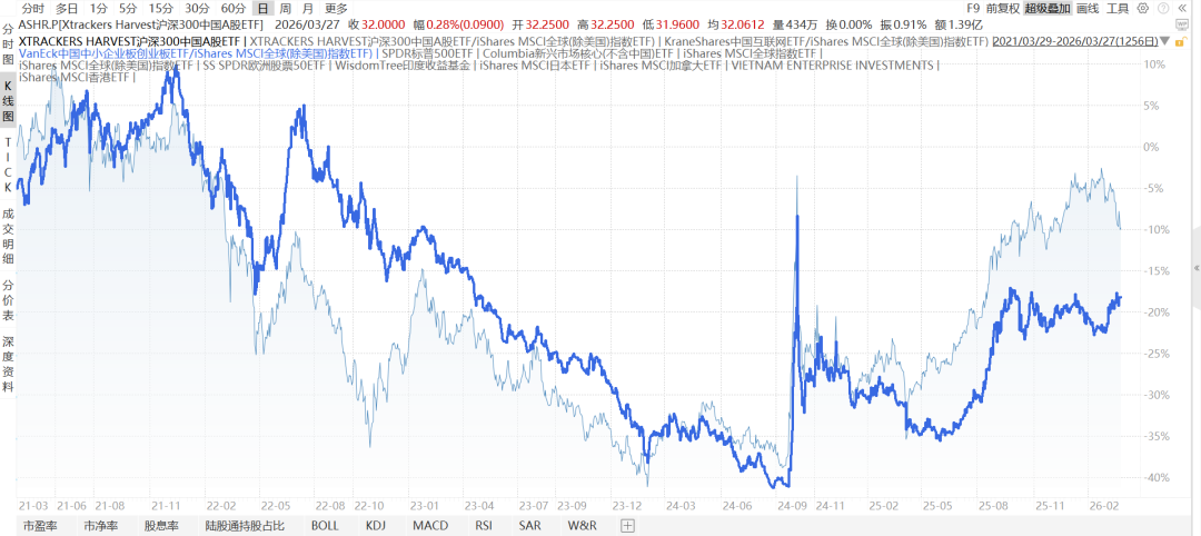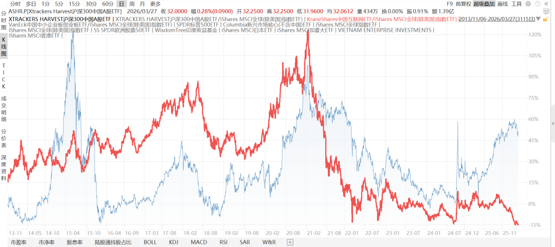 下图是MSCI中国指数(MCHI)/全球除美国,2012-2至今,从2021年开始持续跑输,最近有所反弹,但很难说中国资产现在跑赢全球。