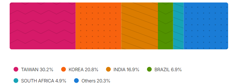 新兴市场中,除了中国,中国台湾、韩国也被划入新兴市场,但他们其实是发达国家(地区),比较值得投资,有很强的半导体制造业。